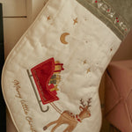 Dale un toque especial a tu Navidad con este calcetín de navidad, acolchado y decorado con bordados festivos.