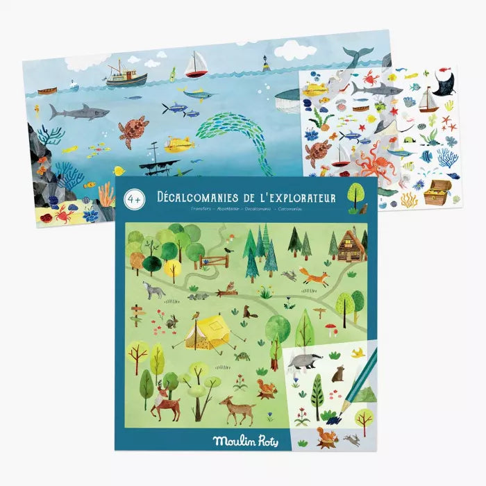 Sal a descubrir el mundo con las pegatinas de The Explorer. Coloca la ilustración elegida sobre uno de los 2 adornos u objeto favorito para personalizar, frota con un lápiz y observa cómo se transfiere como por arte de magia.
