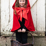 Esta capa inspirada en Caperucita Roja está hecha de terciopelo elástico en dos direcciones y forrada con satén color crema de 96 g/m².