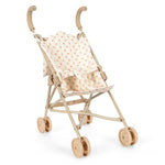 Cochecito para muñecas diseñado con arnés, bolsa de transporte y ruedas dobles en las cuatro patas para mayor estabilidad. Cuenta con tejido extraíble. Viene completamente ensamblado. Fácil de plegar y guardar. La estructura está hecha de hierro con asas suaves y esponjosas.