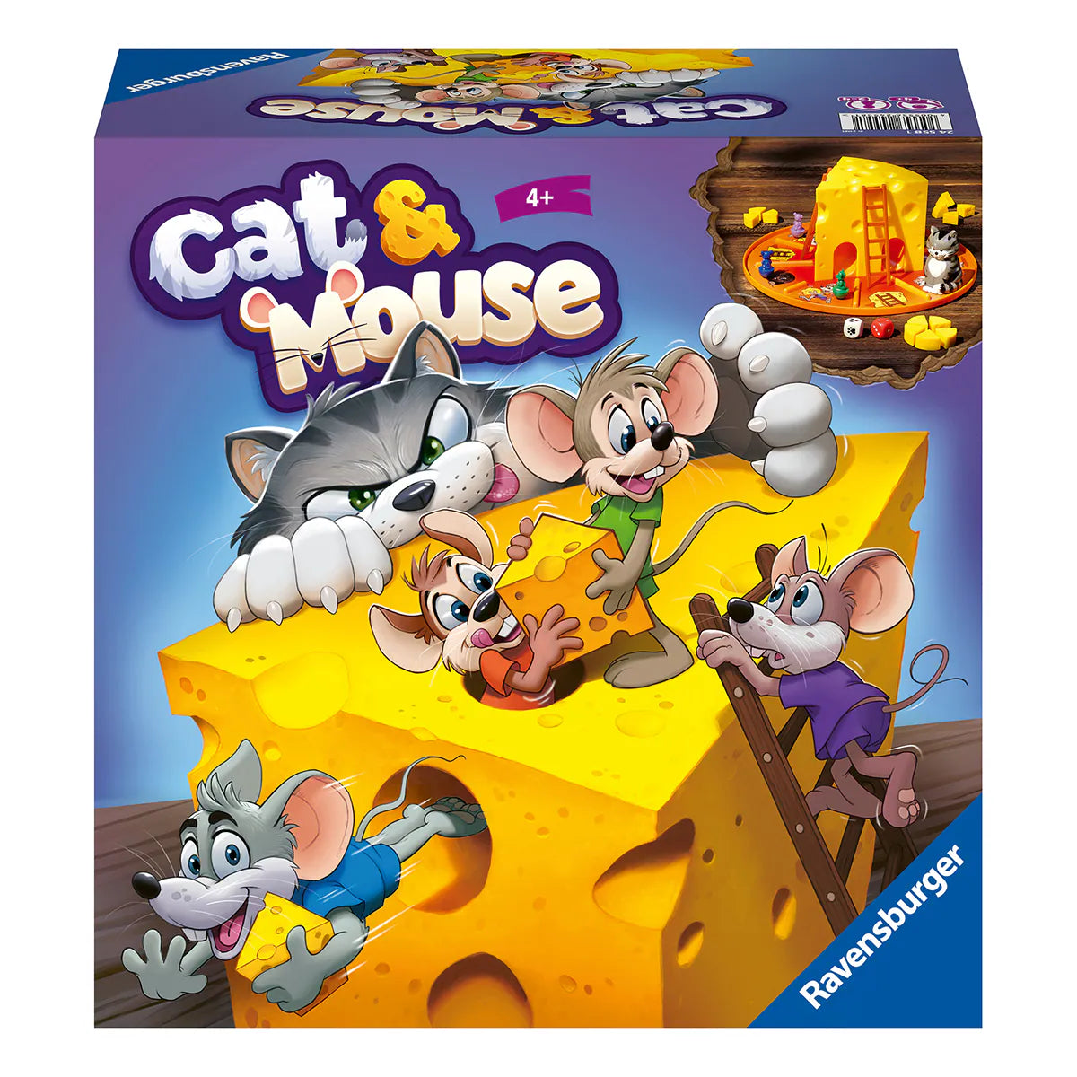 Juego de mesa de Ravensburger que involucra una competencia entre ratones que buscan reunir cuñas de queso. El juego es para 2 a 4 jugadores y combina estrategia con habilidad manual. Los participantes se mueven por el tablero para recoger cuñas de queso mientras evitan ser atrapados por el gato Max. El objetivo es ser el primero en reunir cinco piezas de queso y colocarlas en su lugar. Este juego promueve la inteligencia y la destreza en un entorno lúdico.