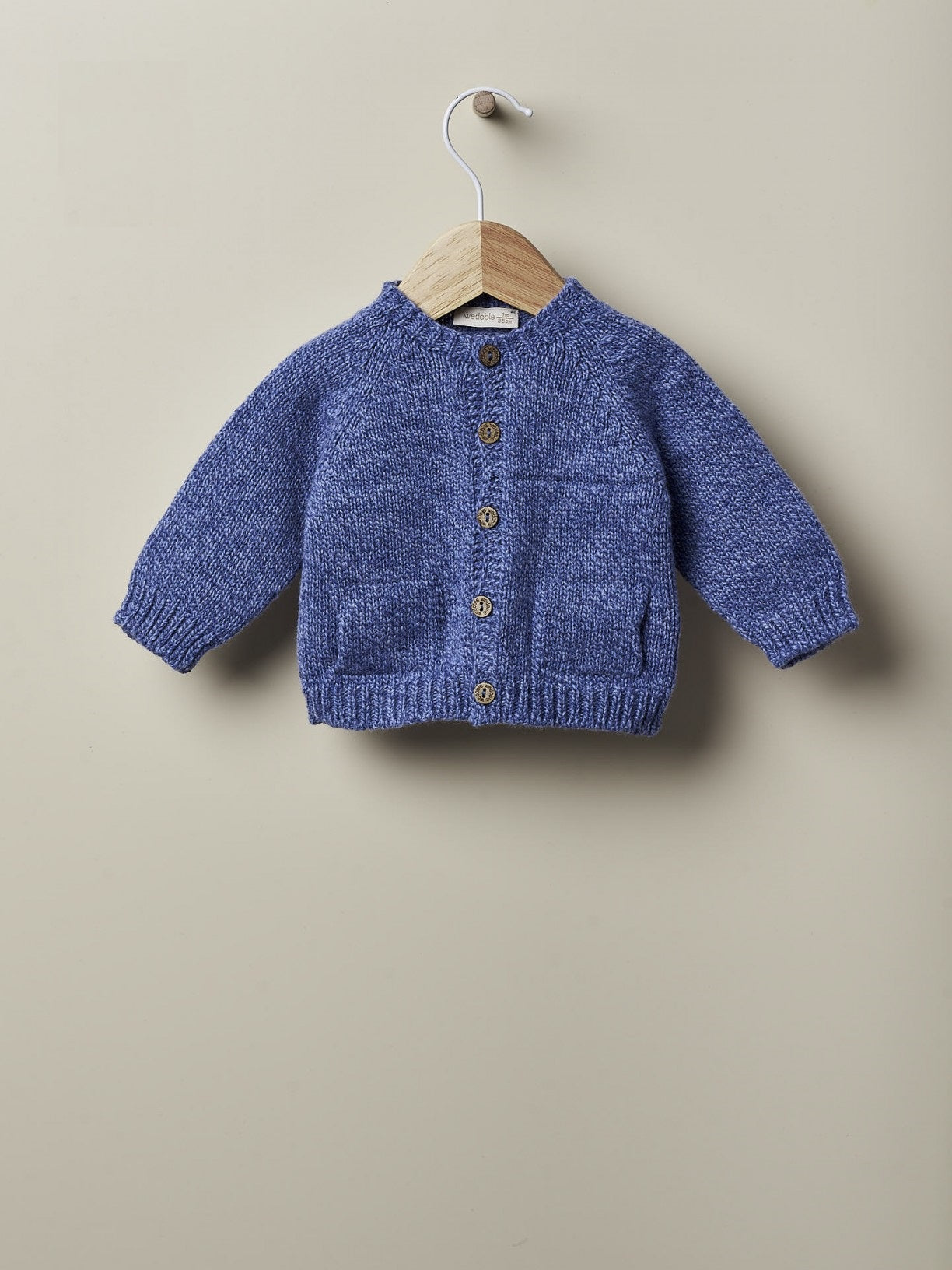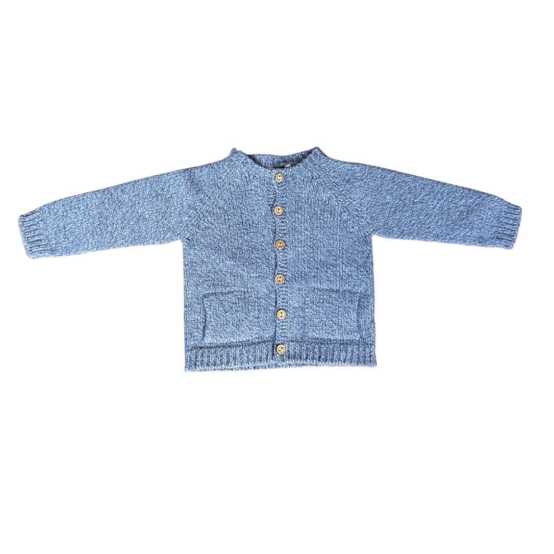 Cárdigan tejido en suave mezcla de lana merino y cashmere, ideal para bebés niños y niñas de hasta 4 años. El cárdigan BABY INFLUENCER de manga larga tiene dos útiles bolsillos delanteros y se abrocha con botones de coco.