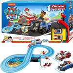 Circuito de 2,4m (montado 93x45cm) en escala reducida especialmente diseñado para niños de más de 3 años. Incluye coches Paw Patrol de Chase y Marshal y elementos decorativos. Funciona con pilas (no incluidas).