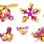 El pack Crew ofrece una avalancha de posibilidades creativas, desde molinetes hasta hélices. Contiene 30 piezas en 8 formas únicas de CLIXO, incluidas 3 piezas giratorias "spinner" para poder montar creaciones que giren sobre sí mismas.