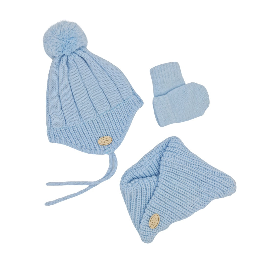 Conj. 3 pzas.: Gorro, cuello cruzado y manoplas.