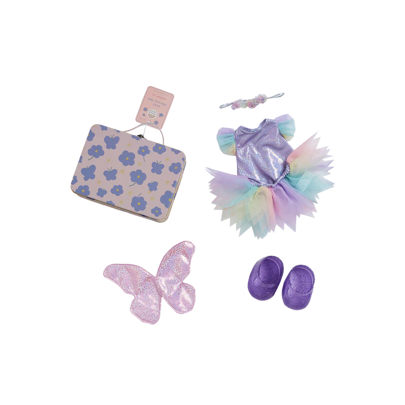 ¡Con una pizca de polvo de hadas, listo! ¡Las muñecas Dinkum se van al país de las hadas con este conjunto fantástico y brillante! ¡Un body, un tutú de tul, una diadema a juego y unas brillantes alas de hada son el conjunto perfecto para cualquier ocasión mágica!