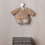 Conjunto para muñecos de 36cm que incluye un body de flores verdes y una sudadera con capucha y pompón. ¡Nunca habíamos visto a Koke tan moderno!