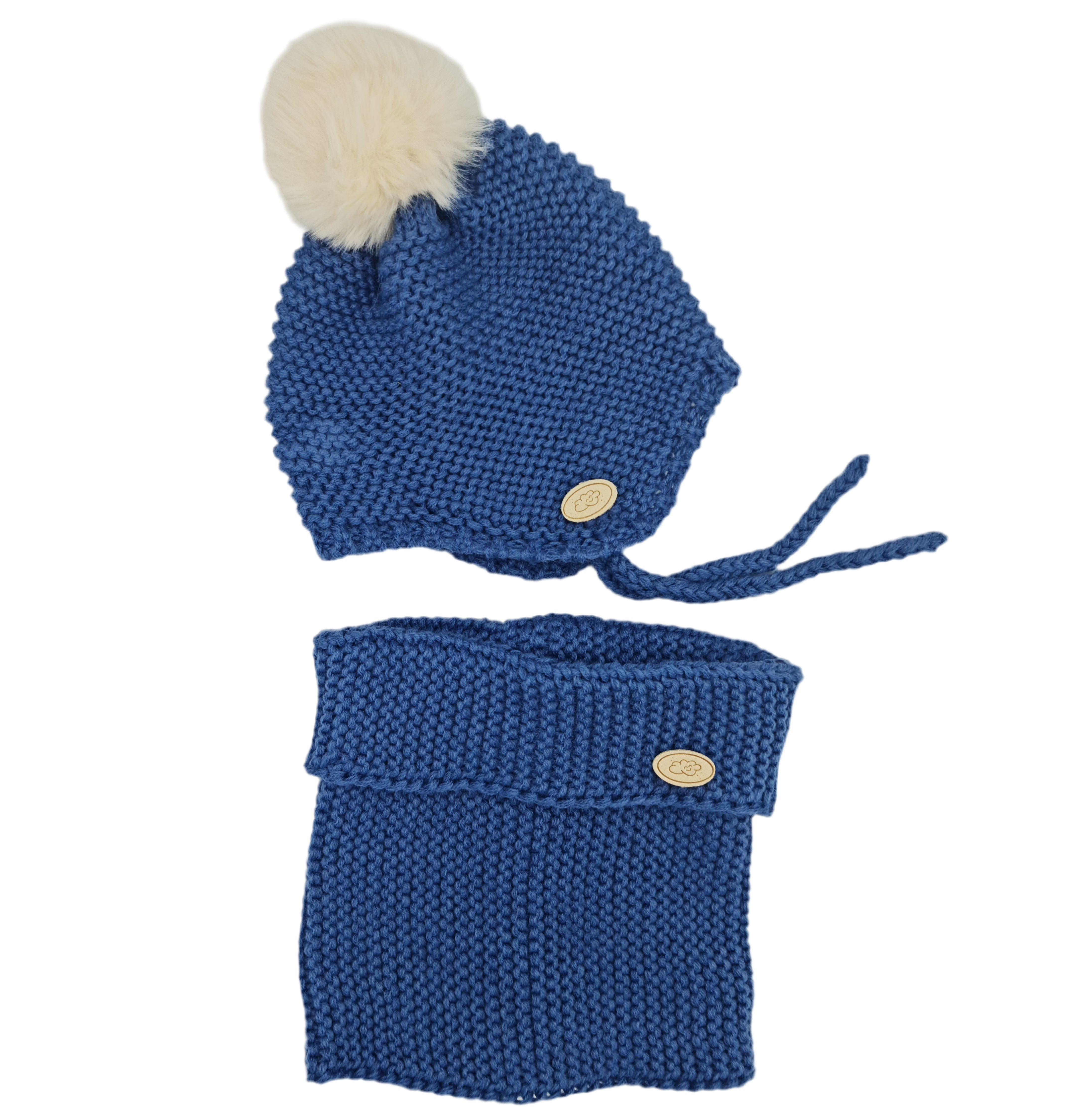 Conjunto Punto Bobo Pompón Azul Tejano