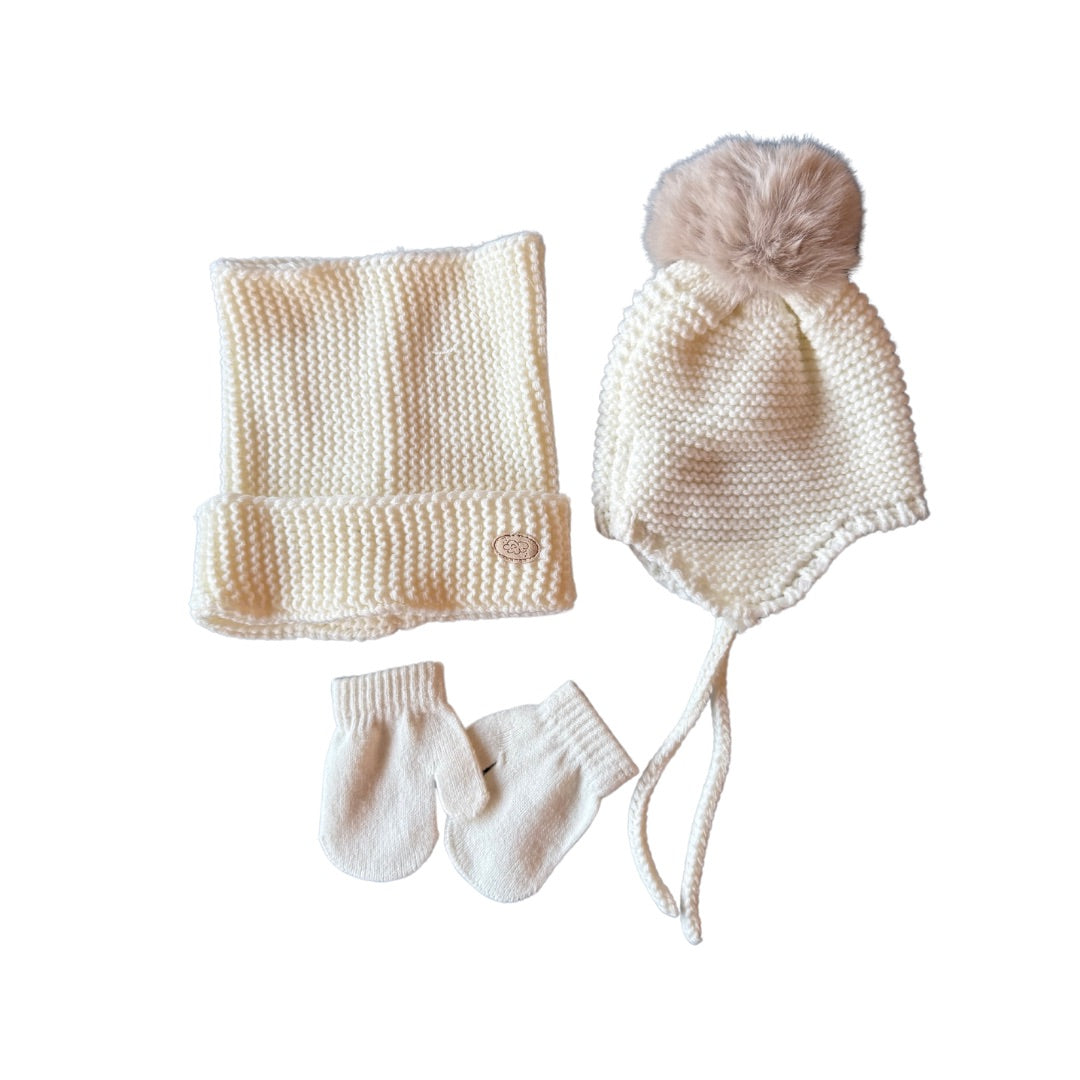 Conjunto Punto Bobo Pompón Blanco Crudo