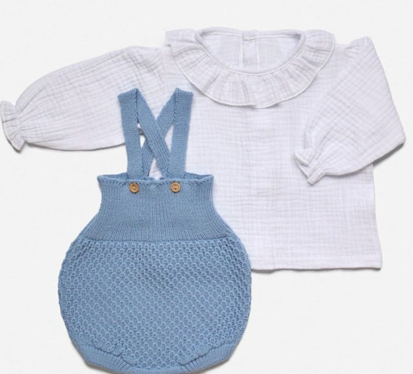 Peto de punto con camisa de tela de bambula en algodón de Juliana.