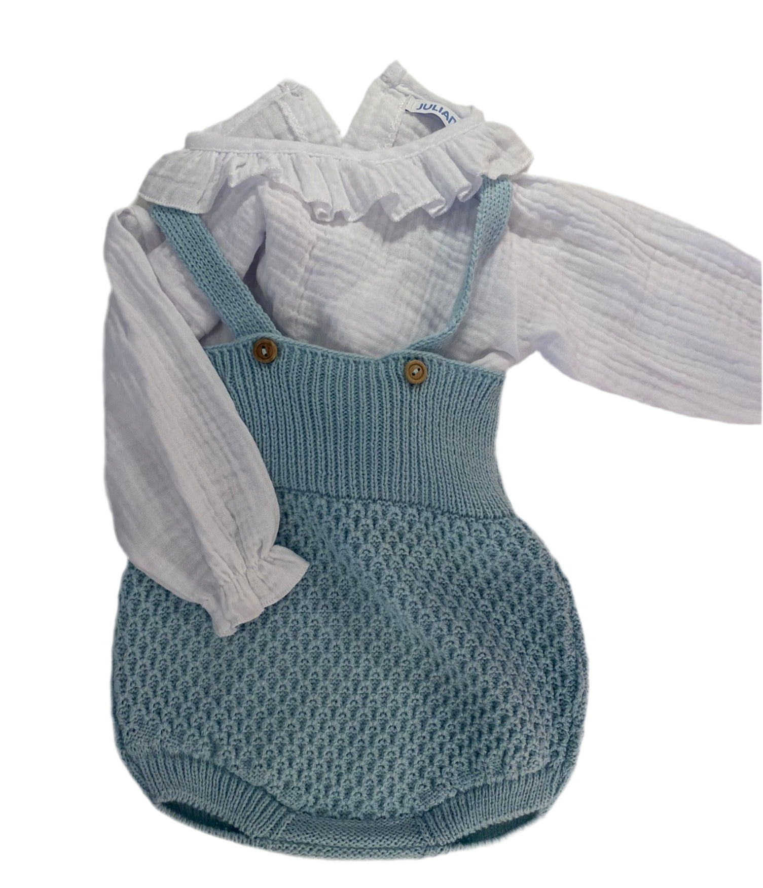 Peto de punto con camisa de tela de bambula en algodón de Juliana.