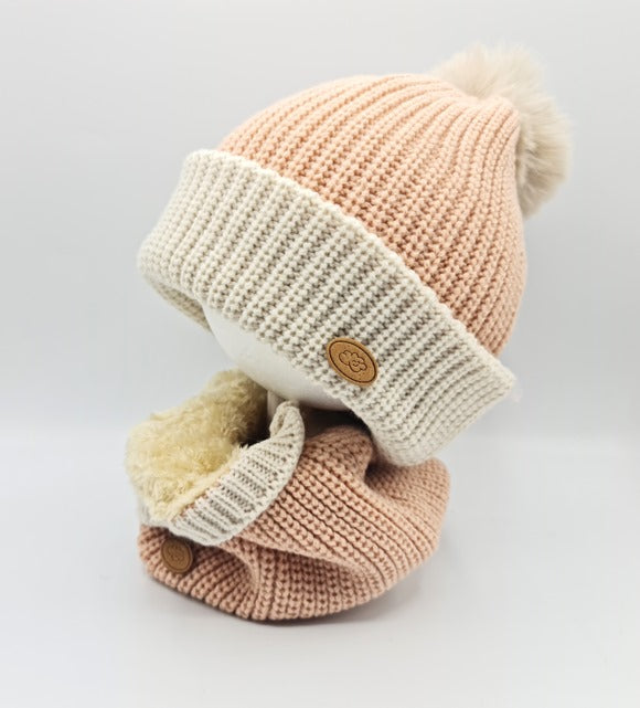 Conjunto de dos piezas formado por gorro y cuello recto (forrado coralina)