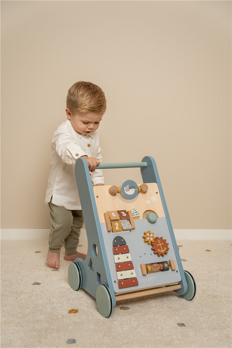 ¡Camine, juegue y aprenda! Este andador multiactividades de madera ofrece muchas actividades desafiantes para apoyar el desarrollo de las habilidades motoras de su hijo. ¡Mira cómo se refleja la luz si le das una vuelta al espejo! Desafía a tu bebé con las muchas actividades interesantes de este andador bellamente decorado. Hay 8 actividades para explorar y dominar. Gracias al diseño equilibrado, el andador es muy adecuado para aprender a caminar para niños de 12 meses o más que están casi listos para dar sus primeros pasos. Prepárese para algunos aplausos alegres cuando su pequeño corra por la casa. Las ruedas de goma no dejarán marcas en el suelo y son seguras para usar en interiores . |