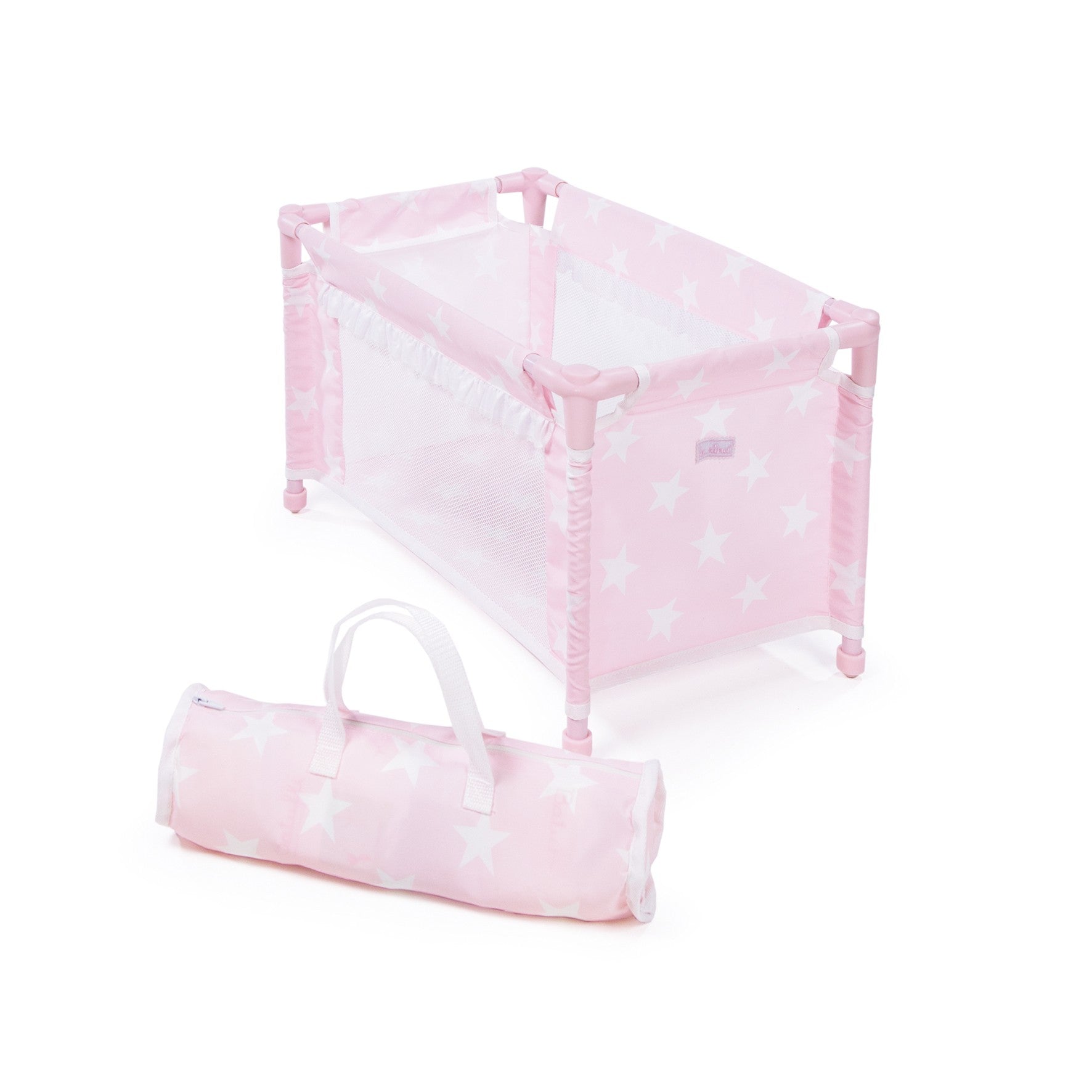 Ya puedes llevarte de vacaciones a tus muñecas con la cama de viaje Carlota en estrellas rosa, plegable y muy práctica. Incluye bolsa para guardarla y para su fácil transporte. Ideal para muñecas de 30 a 52 cm. Estructura de plastico en rosa. No ocupa espacio. Acabados de calidad, muy sólida y estable. A partir de 3 años. Juguete de imitación.