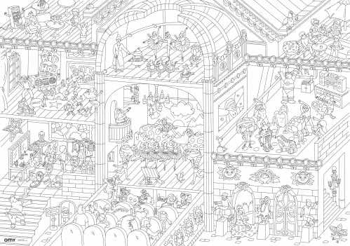 Un póster creativo para colorear solo o en compañía, desplegar en el suelo, la mesa o la pared.