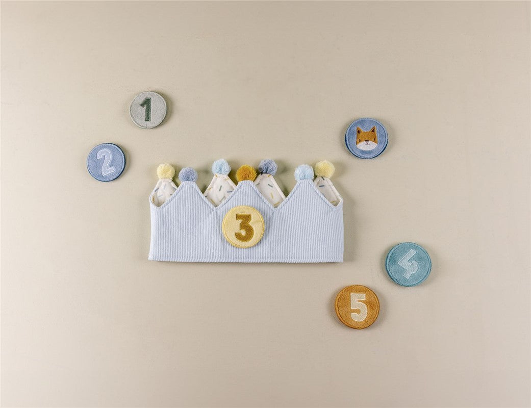 ¡Feliz cumpleaños! Celebra con estilo con esta adorable corona de cumpleaños y espolvoree un poco de magia de cuento de hadas en su día especial. Viene con números intercambiables del 1 al 5, lo que lo hace perfecto para los hitos de crecimiento de su pequeño. ¡Adjunta el número de cumpleaños a la corona y captura esos preciosos momentos! U opta por el parche de un animal cuando tu pequeño quiera ser el rey o la reina del país de las maravillas.