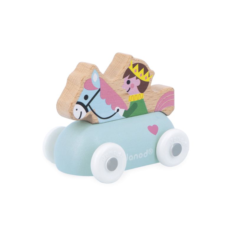 El príncipe se ha montado en su caballo para dar un paseo por el reino. Con este juguete con ruedas, los más pequeños podrán inventar un sinfín de historias. La forma del juguete con ruedas está diseñada para que los más pequeños puedan agarrarlo mejor. Juguete de madera FSCTM para niños a partir de 12 meses. Combinado con tu alfombra y la bonita caja de cubos de la gama Janod, este juguete con ruedas completa a la perfección tu universo.