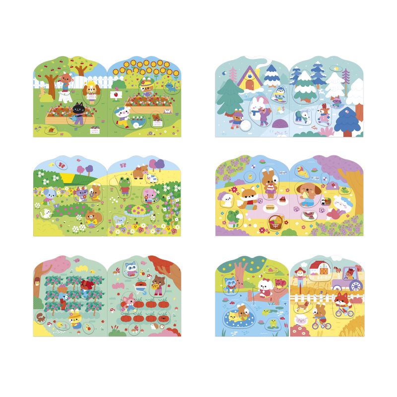 ¿Todo listo para pasar las vacaciones en el campo? Este cuaderno de forma siluetada consta de 12 páginas con decorados ilustrados inspirados en el campo para completarlos con las 8 láminas de pegatinas. Para ayudar al niño a encontrar la ubicación de cada pegatina, están marcadas en color atenuado. Las pegatinas son de formas sencillas para facilitar su agarre y no tienen bordes. Son reposicionables y vienen en unas láminas grapadas al cuaderno. Esta actividad permite desarrollar la paciencia y la motricidad fina. Es ideal para niños a partir de 3 años.