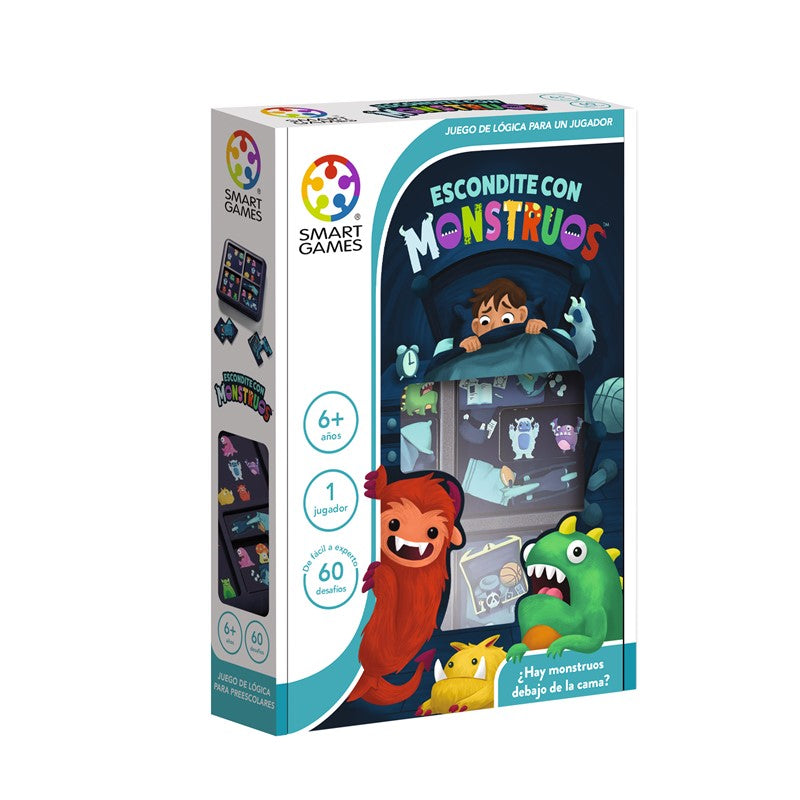 Coloca las cuatro piezas de puzle en el tablero de juego para esconder todos los monstruos excepto los que se muestran en el reto. 60 retos incluidos en un juego con tapa, perfecto para viajes.