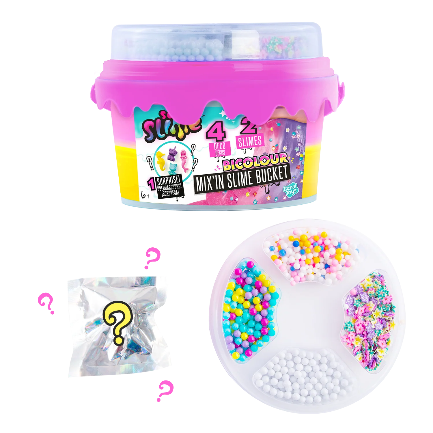 Componentes: - 1 cubo de 400g de Slime - 4 decoraciones - 1 personaje sorpresa