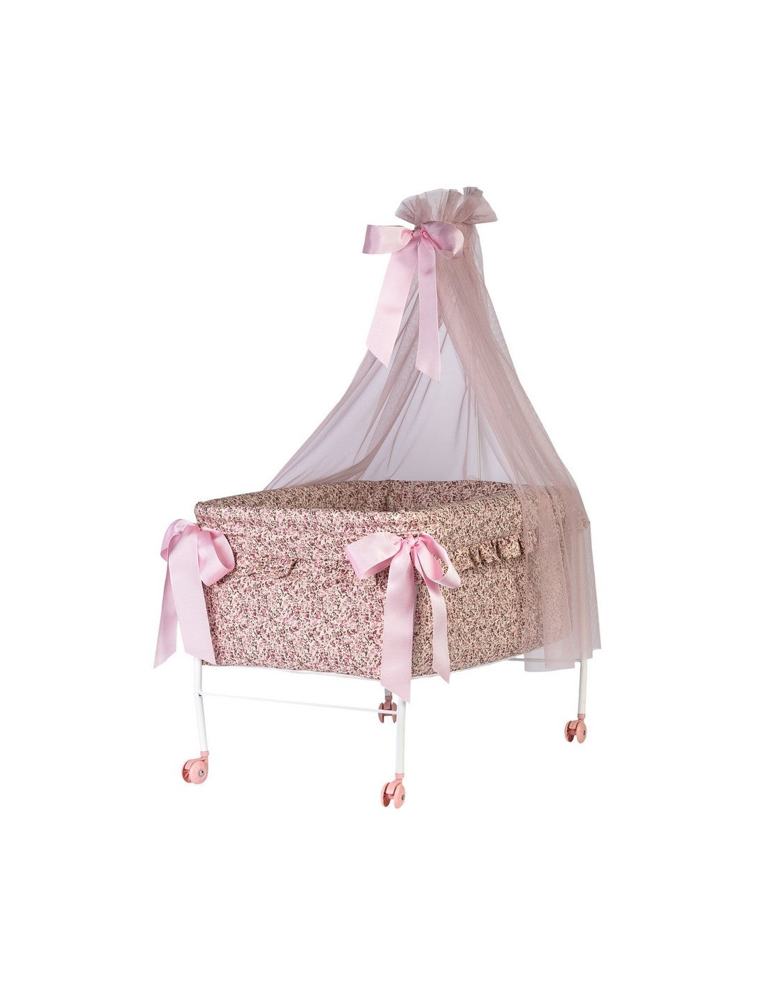 No hay mejor lugar para que tu muñeca descanse que en esta preciosa cuna de flores Martina con dosel de tul rosa.