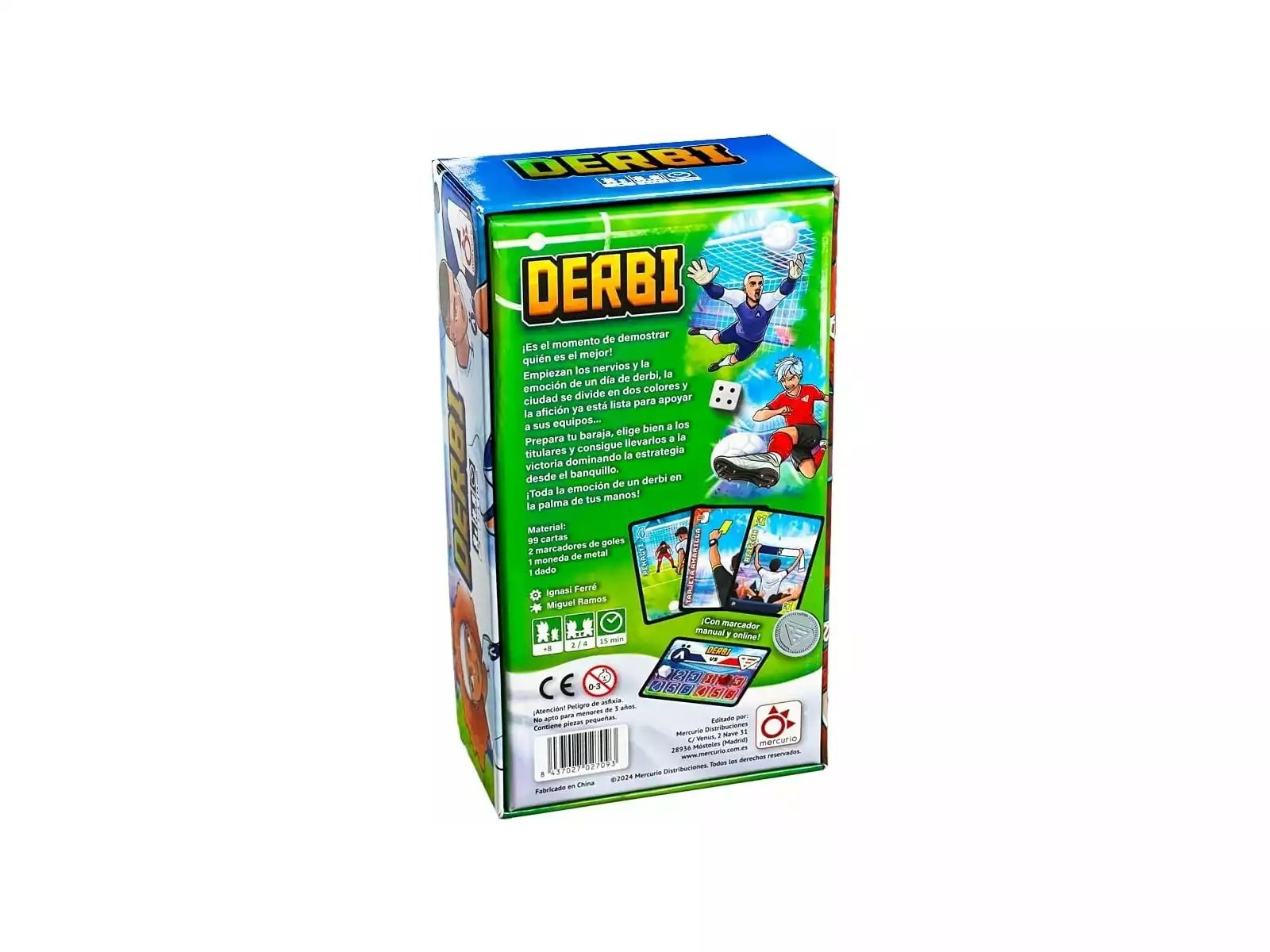 Consigue este nuevo y original juego de cartas, en el que has de preparar tu baraja de juego, creando un buen equipo y una infalible estrategia con la que derrotar a tus rivales en el gran Derbi. La emoción inconfundible de un Derbi d le la ciudad, ahora en tu formato preferido y para toda la familia.