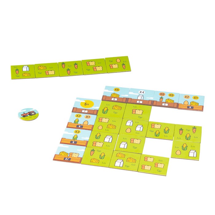 Contenido: Ficha de primer jugador, 65 tarjetas de comida, 44 tarjetas de pedido, reglas de juego.