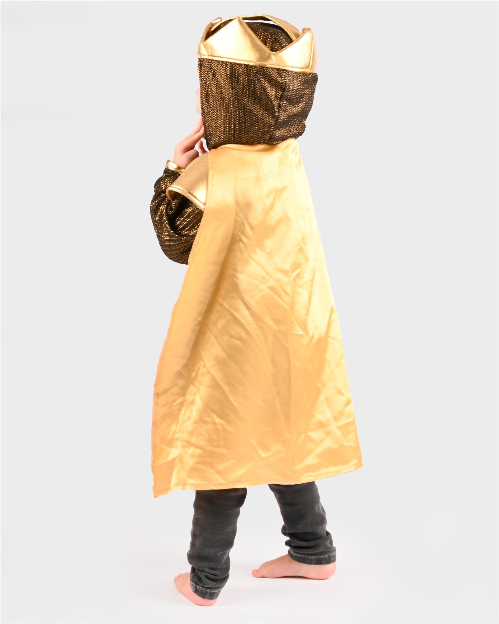 - Capucha con corona integrada: La corona cosida en la capucha añade un toque real a este disfraz.