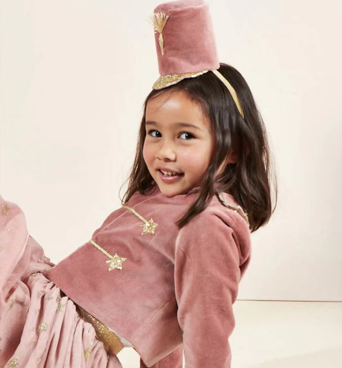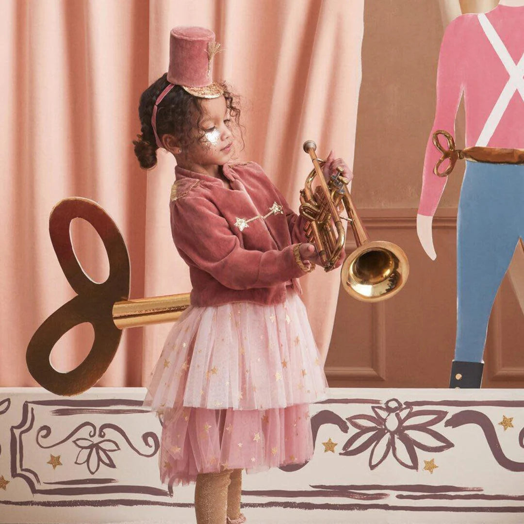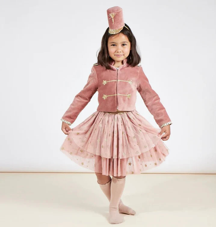 Este disfraz de soldadito de plomo Rosita está confeccionado con terciopelo, tul y dorados en color oro. Un regalo maravilloso para horas de juego imaginativo durante la temporada festiva y más allá.