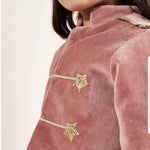 La chaqueta / abrigo se abre y cierra fácilmente gracias a los elegantes automáticos dorados. Tiene detalles dorados en los puños y hombros. Se puede cambiar con unos jeans y la niña irá ideal.