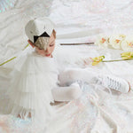 Esta maravillosa capa de tul con alas, forrada en blanco y con varias capas, se cierra de forma segura con un broche de presión.