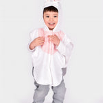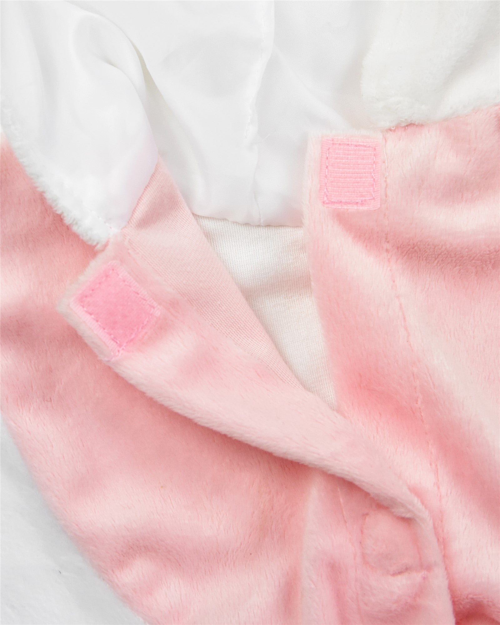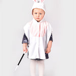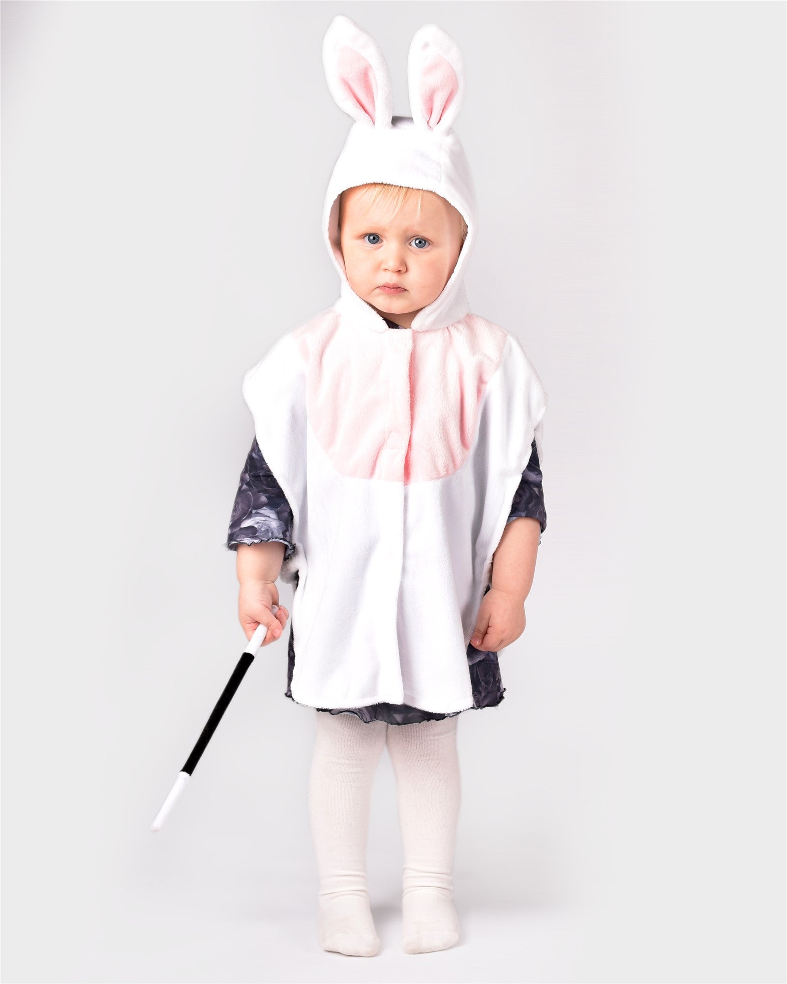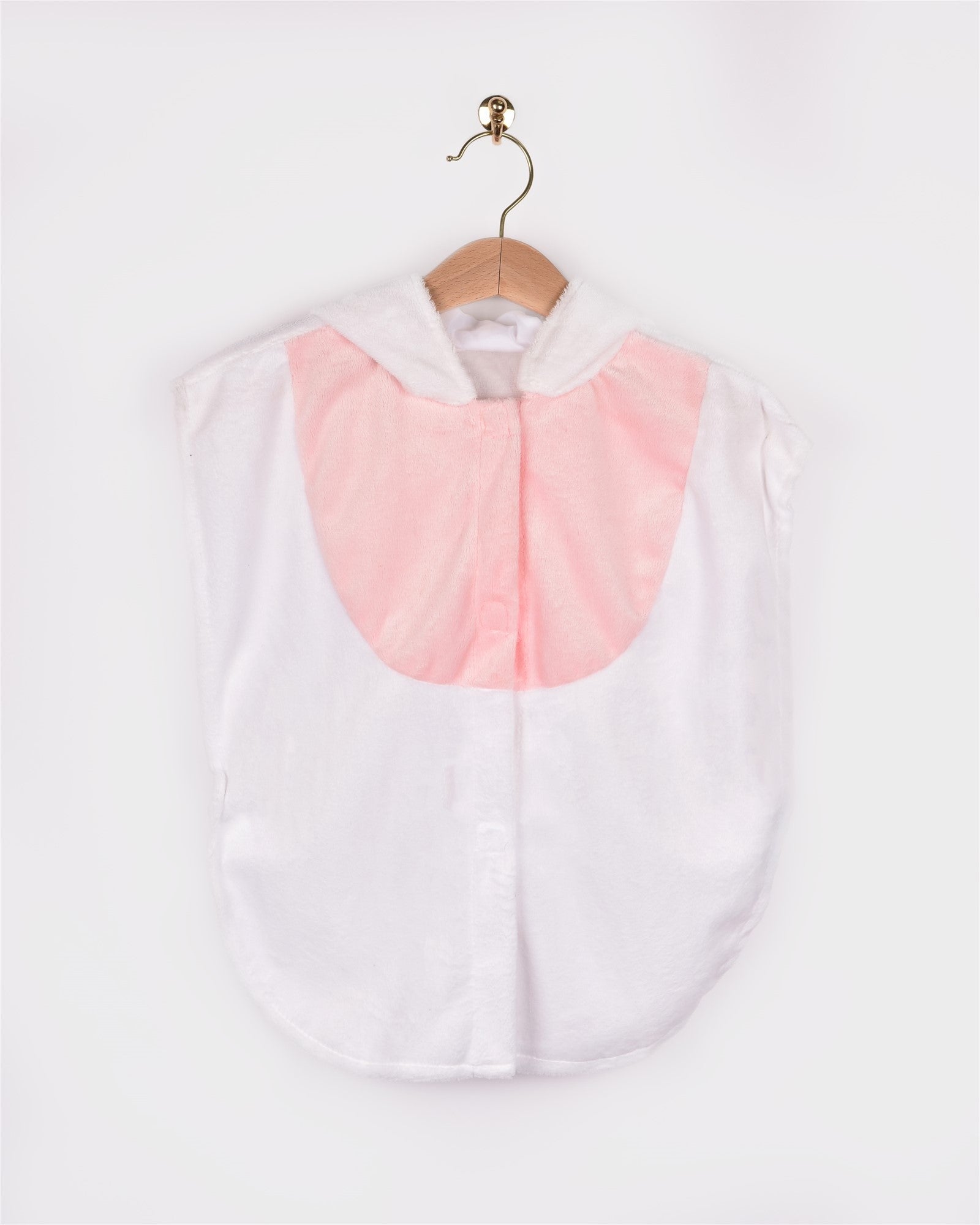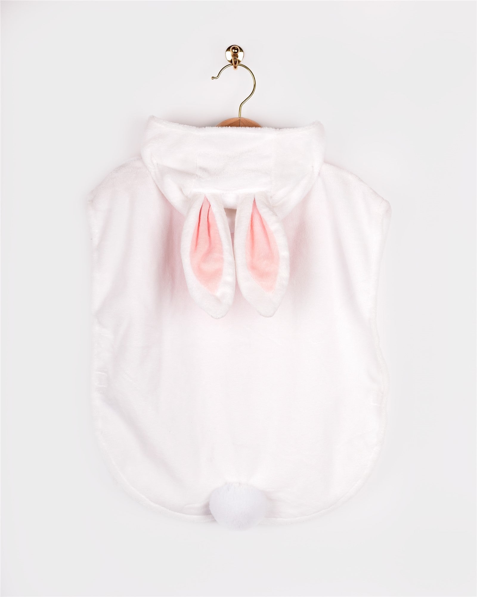 Disfraz de conejo con orejas y cola. Con cierre de velcro en la parte delantera.