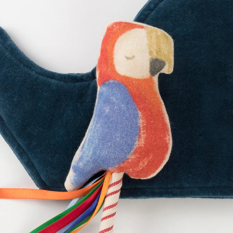 Este disfraz de pirata es perfecto para una fiesta pirata o para jugar con imaginación cualquier día. Incluye un sensacional sombrero de terciopelo, un parche brillante en el ojo y un gancho, todo con relleno de poliéster para un efecto fabuloso. Combínalo con la varita con un loro colorido y lucirás como un auténtico aventurero.