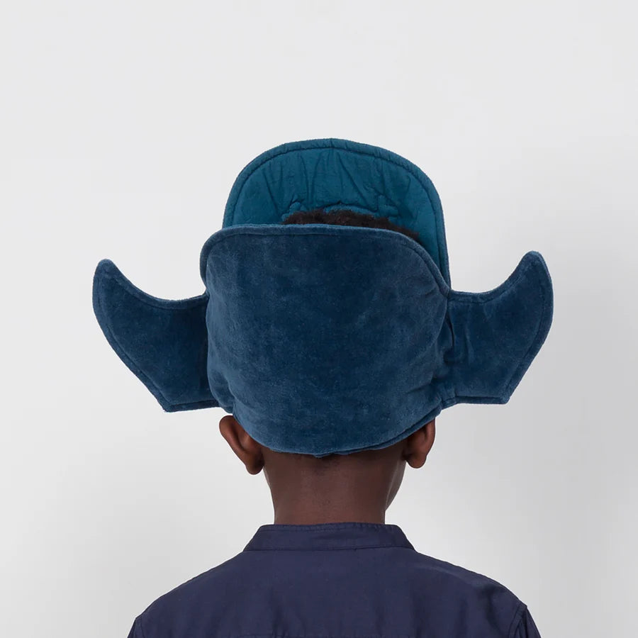 Sombrero de pirata de algodón con un brillante detalle de calavera y huesos cruzados dorados y relleno de poliéster.