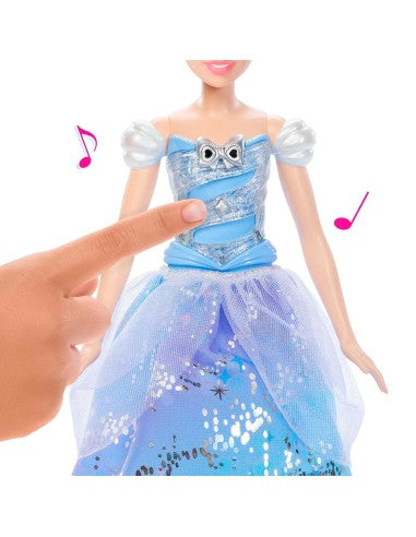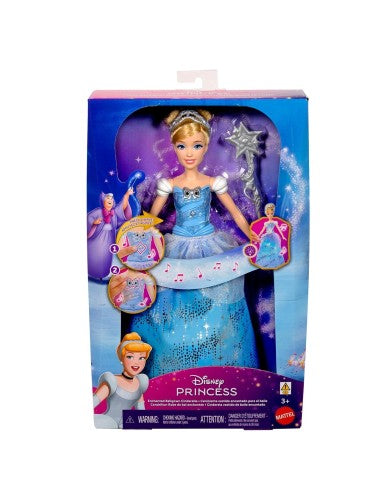 A los fans de Disney les encantará recrear la mágica transformación de Cenicienta con esta muñeca de moda con vestido de baile encantado. Con un movimiento de la varita mágica, el vestido de la muñeca se iluminará mientras se oyen sonidos mágicos: ¡un total de cuatro patrones de luz y sonidos diferentes!