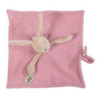 Un suave doudou del conejito Sylvain para que acompañe los dulces sueños de tu bebé. Con su vestido de rayas rojas y blancas, una suave carita y un lazo para colgar el chupete.