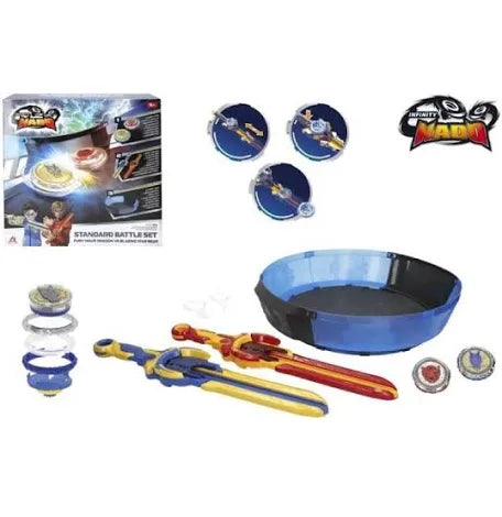 El equipo completo de competición Infinity Nado. Incluye el estadio acrobático y espada Premium para las más divertidas y emocionantes batallas de peonzas.
