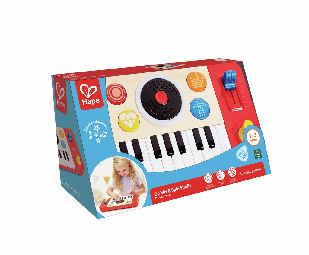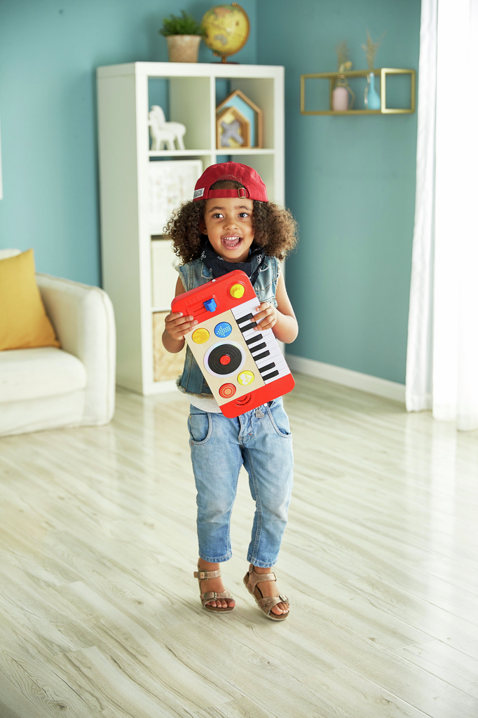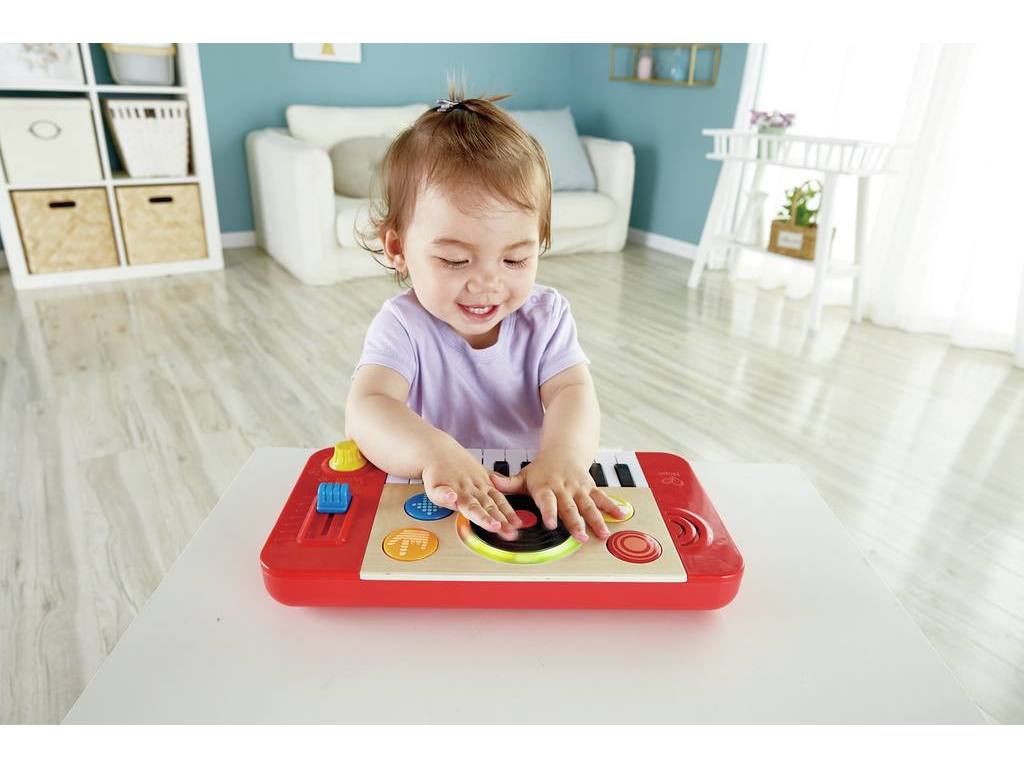 Dale al mezclador y ayuda a tu pequeño/a DJ a tocar sus primeras melodías con este juguete musical portátil. Toca el teclado en solitario o gira el botón para seleccionar uno de los cuatro sonidos de instrumentos (piano, bajo, órgano y batería), o los 18 divertidos efectos de sonido. Perfecto para expresarse a través de la música.