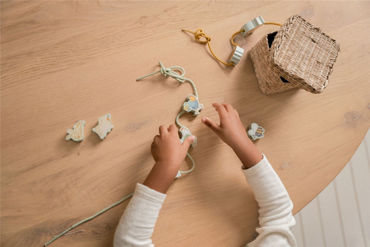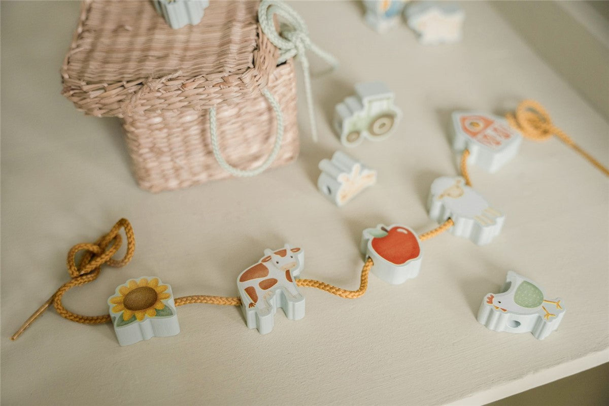 Haz de cada día de tus pequeños una aventura en la granja con estas figuras sólidas de madera para enlazar cordones.