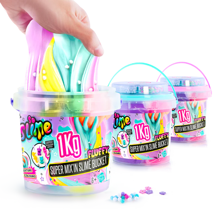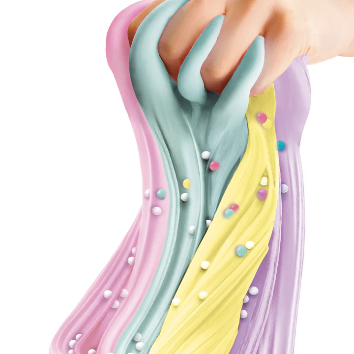Componentes: - 1 cubo - 4 bolsas de Slime de 250 g - 4 decoraciones