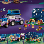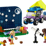 Los jóvenes entusiastas de las aventuras están llenos de descubrimientos con LEGO® Friends Campervan Observando las Estrellas, diseñado para niñas y niños de 7 años en adelante. El set incluye un telescopio para construir, un vehículo 4x4 con remolque, una tienda de campaña plegable, 2 minimuñecos, un perro y un erizo.
