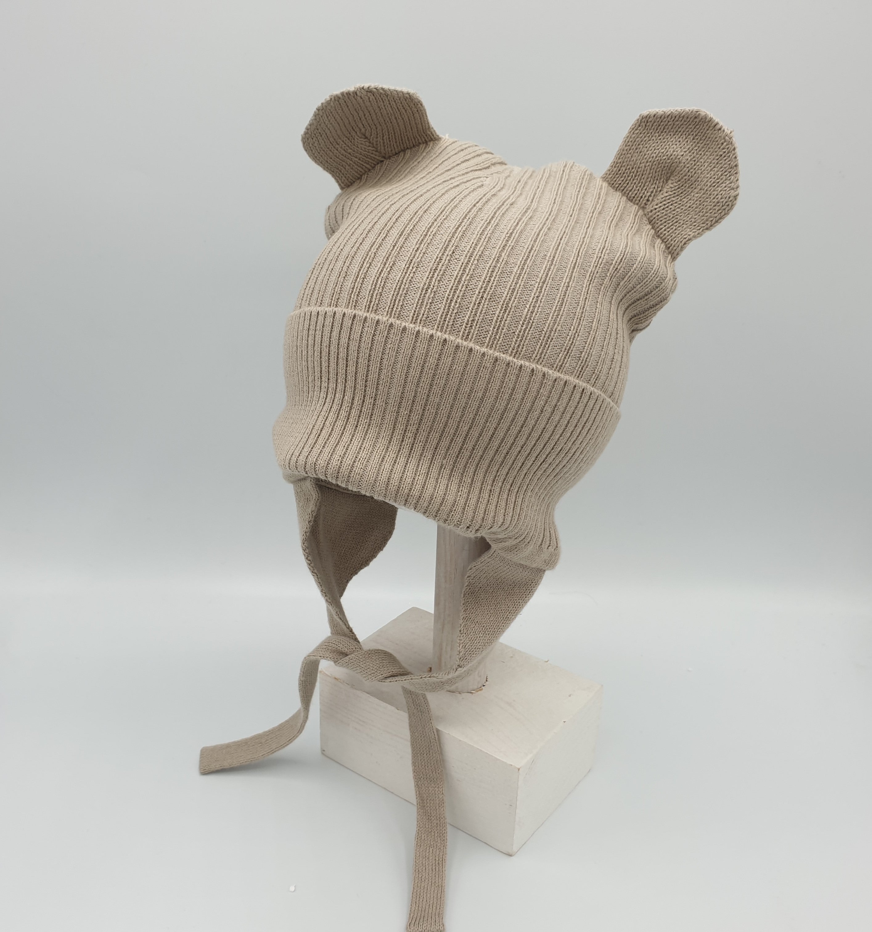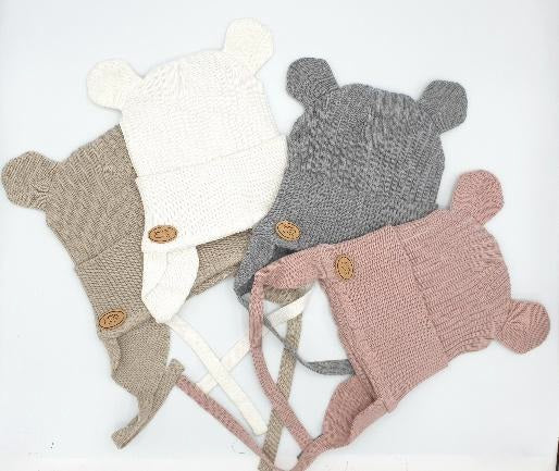 Gorro de bebé de punto de canalé con orejitas.