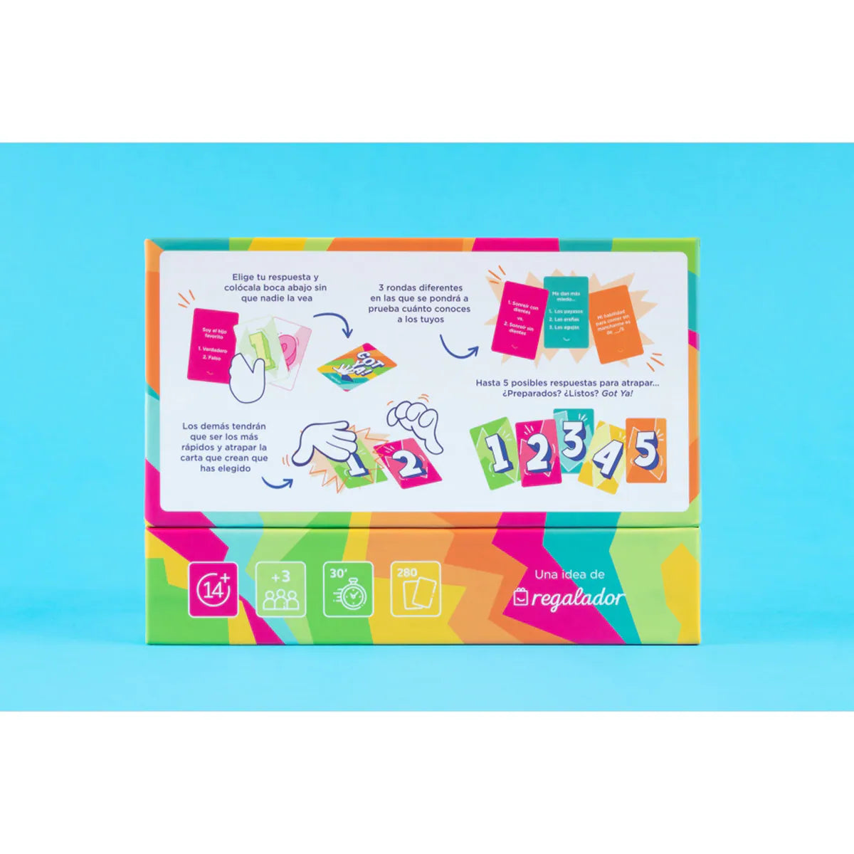 Sé el más rápido en demostrar que conoces a los tuyos. Elige tu respuesta y colócala boca abajo sin que nadie la vea. Los demás tendrán que ser los más rápidos y atrapar la carta que crean que has elegido.