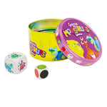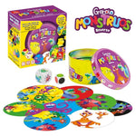 Contenido: 36 cartas monstruosas a doble cara, un dado de monstruos, un dado de colores y reglas de juego.