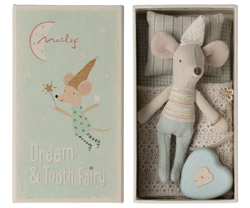 Por la noche, el Ratoncito Pérez esparce polvo de hadas, recoge dientes, trae golosinas y se asegura de que tengas dulces sueños. Vístete mágicamente y duerme tranquilo con ropa de cama suave; incluye caja de dientes y caja de cerillas. Las telas pueden variar