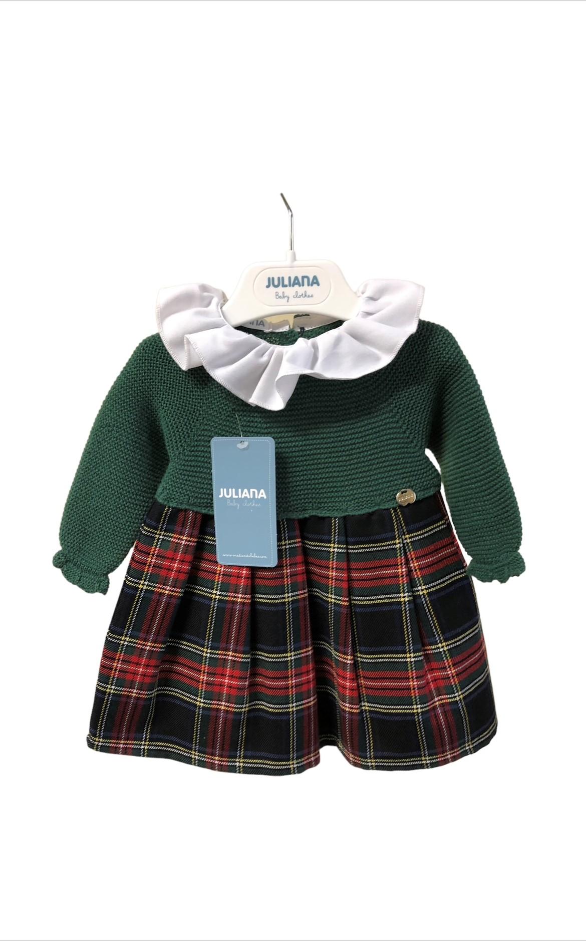 Vestido Cuerpo Punto Falda Tela Cuadros Escoceses Verde Musgo