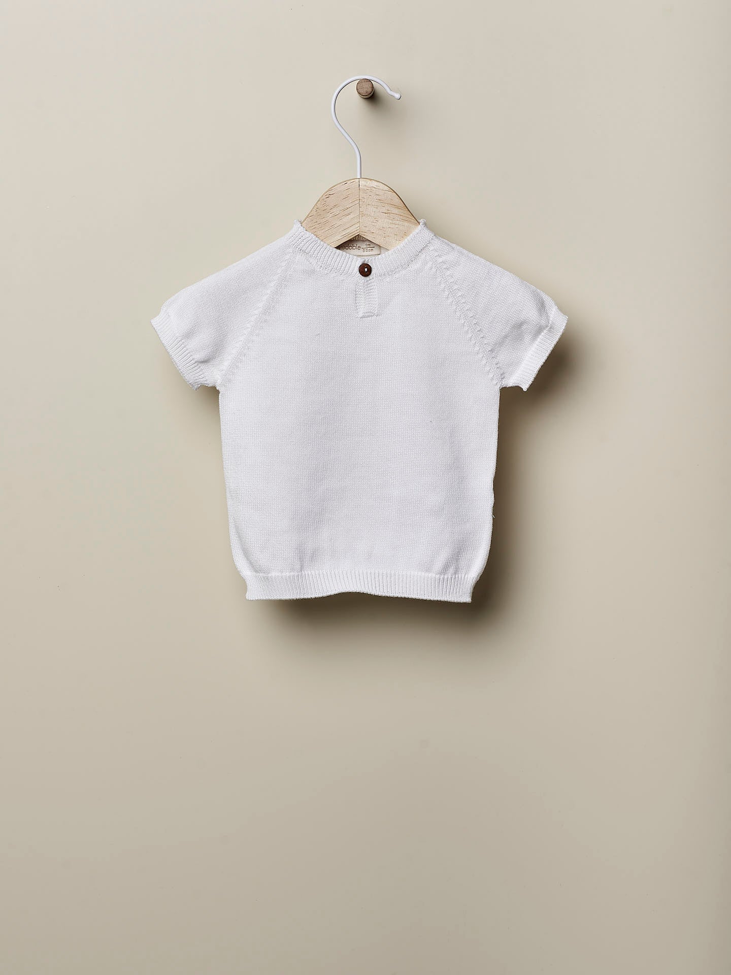 Jersey de manga corta en tejido en malla fina de algodón suave y transpirable, ideal para bebés niños y niñas. Cierre delantero con botones de madera. Producido en una sola pieza sin costuras, para el máximo confort de tu bebé.