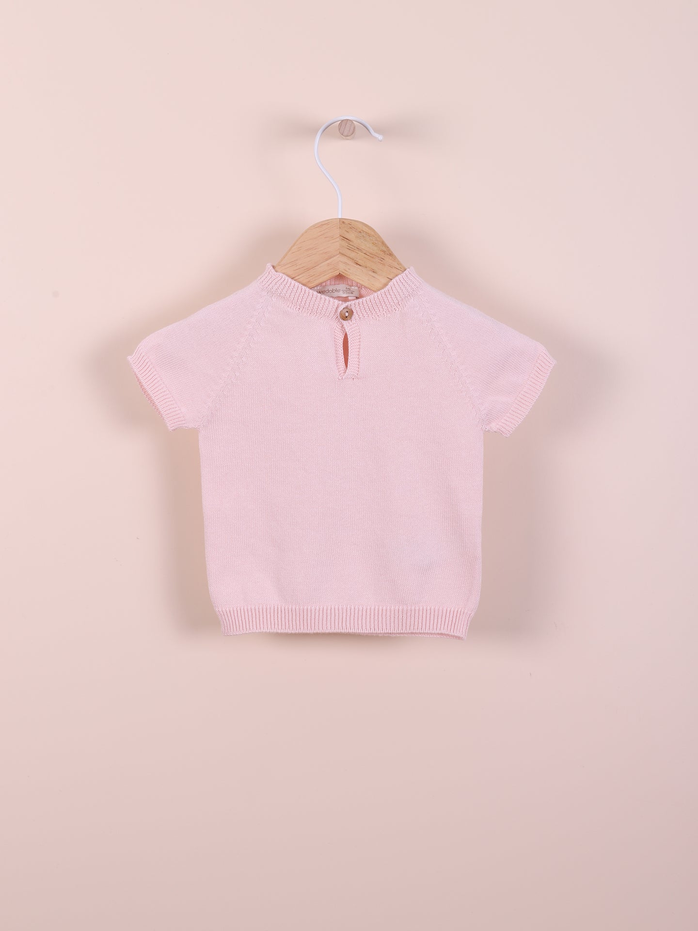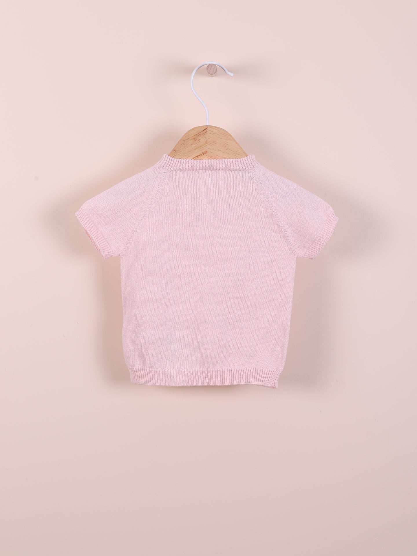 Jersey de manga corta en tejido en malla fina de algodón suave y transpirable, ideal para bebés niños y niñas. Cierre delantero con botones de madera. Producido en una sola pieza sin costuras, para el máximo confort de tu bebé.