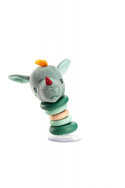 Este sonajero se mueve alegremente en todas las direcciones al menor empujón. Gracias a la ventosa, se mantendrá perfectamente erguido y podrás colocarlo en cualquier lugar.
