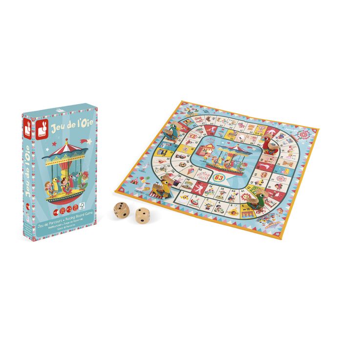 Ayuda a tu oca a llegar al tiovivo. Sé el primero en llevar tu oca al final del recorrido evitando las trampas y obstáculos del camino. Un juego familiar para pequeños y grandes recreado en torno al tema de la feria con bonitas ilustraciones coloreadas. Un juego ideal para estimular la concentración y el sentido de la observación de una forma divertida. De 2 a 4 jugadores.